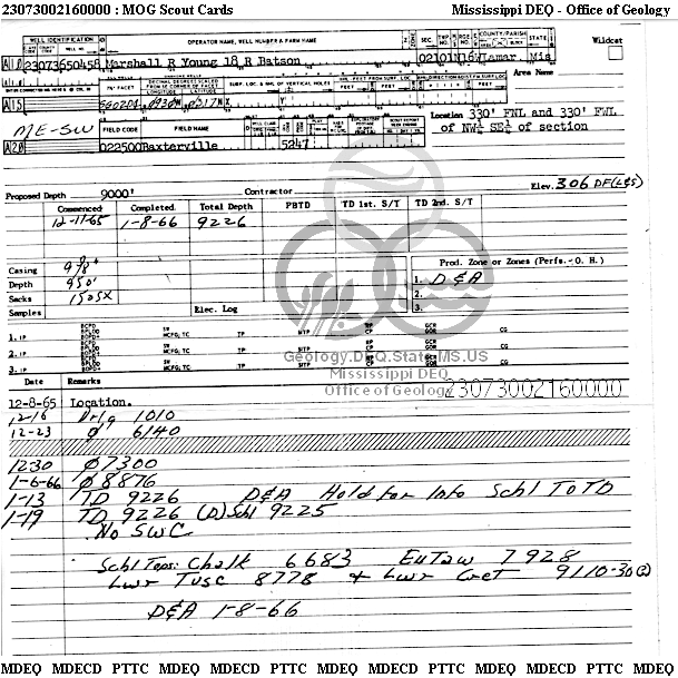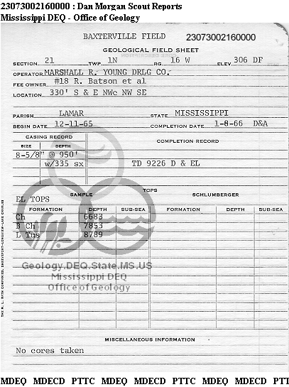 | 1 | 23073002160000 | BROWNING & WELCH, INC | R BATSON ETAL | 18 | Dry Hole |