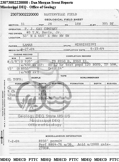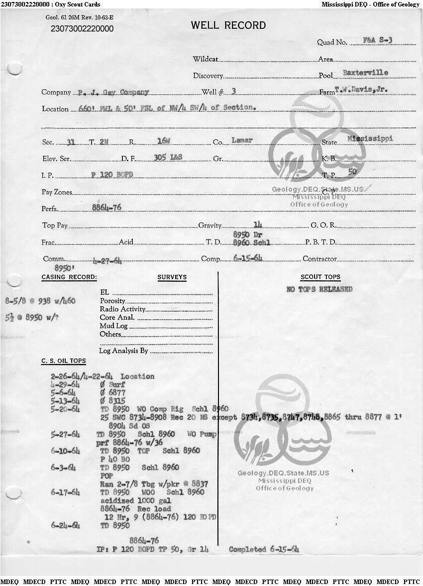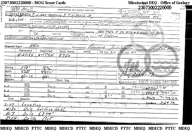 | 1 | 23073002220000 | P. J. GAY CO. | T W DAVIS JR | 3 | Oil Production |