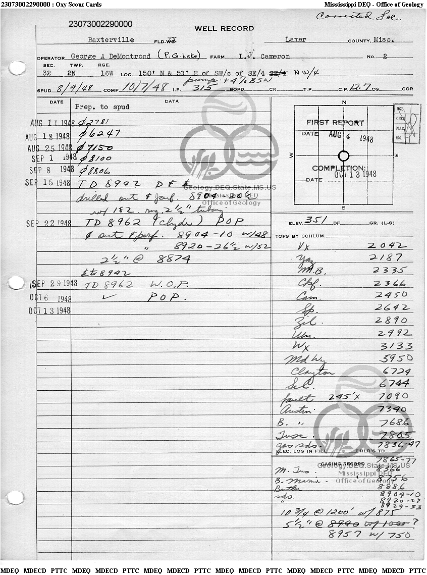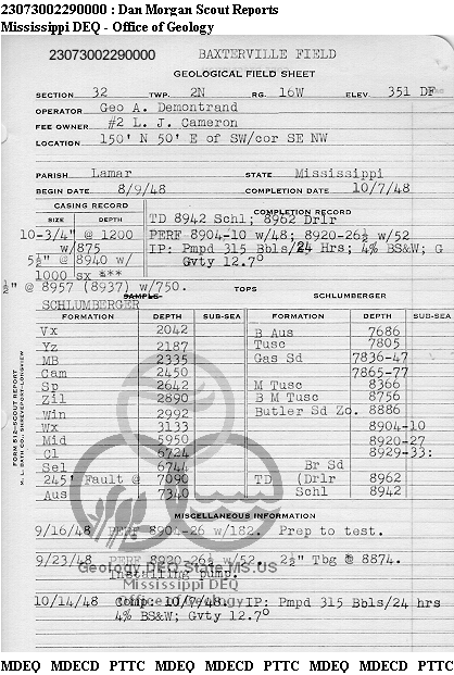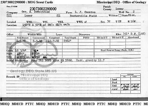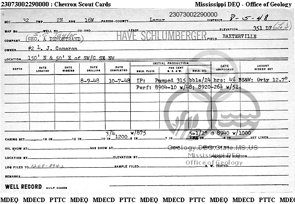 | 1 | 23073002290000 | TEXAS PETROLEUM INVESTMENT CO | L. J. CAMERON | 2 | Disposal |