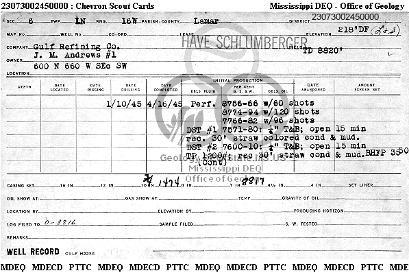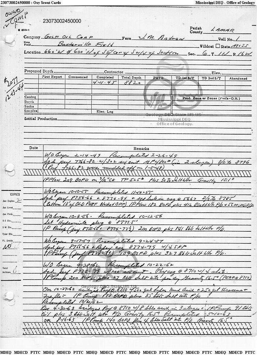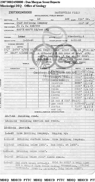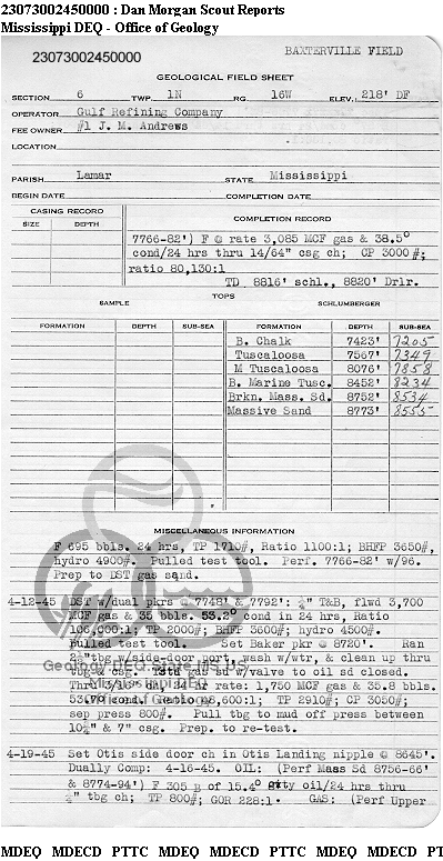 | 1 | 23073002450000 | TELLUS OPERATING GROUP LLC | J M ANDREW | 1 | Oil Production |