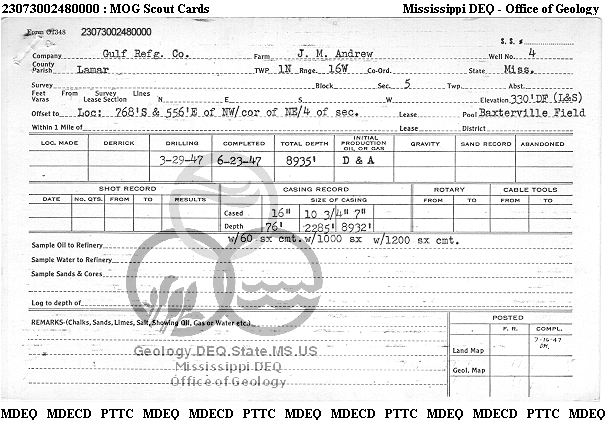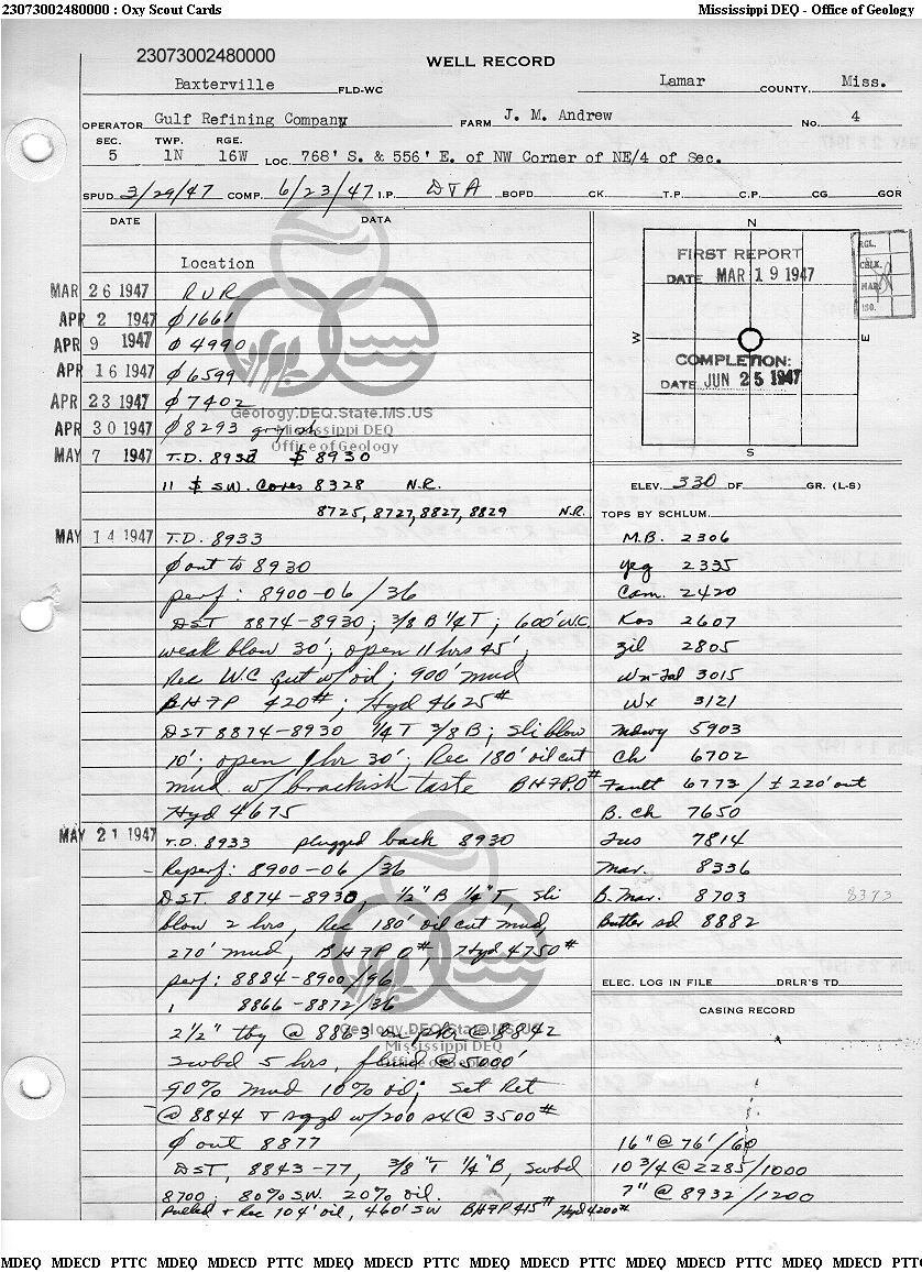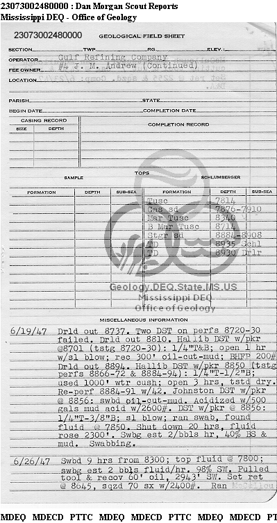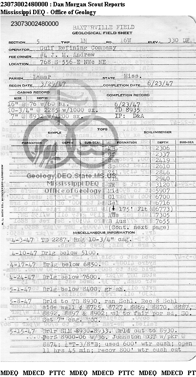 | 1 | 23073002480000 | GULF REFINING CO. | J M ANDREW | 4 | Dry Hole |