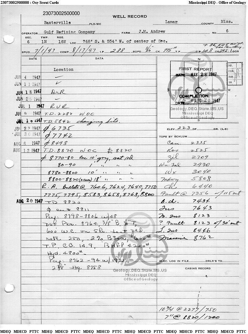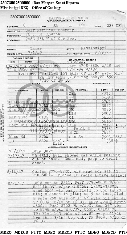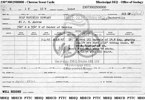 | 1 | 23073002500000 | PENNZOIL EXPL & PROD CO -TX | J M ANDREW | 6 | Oil Production |