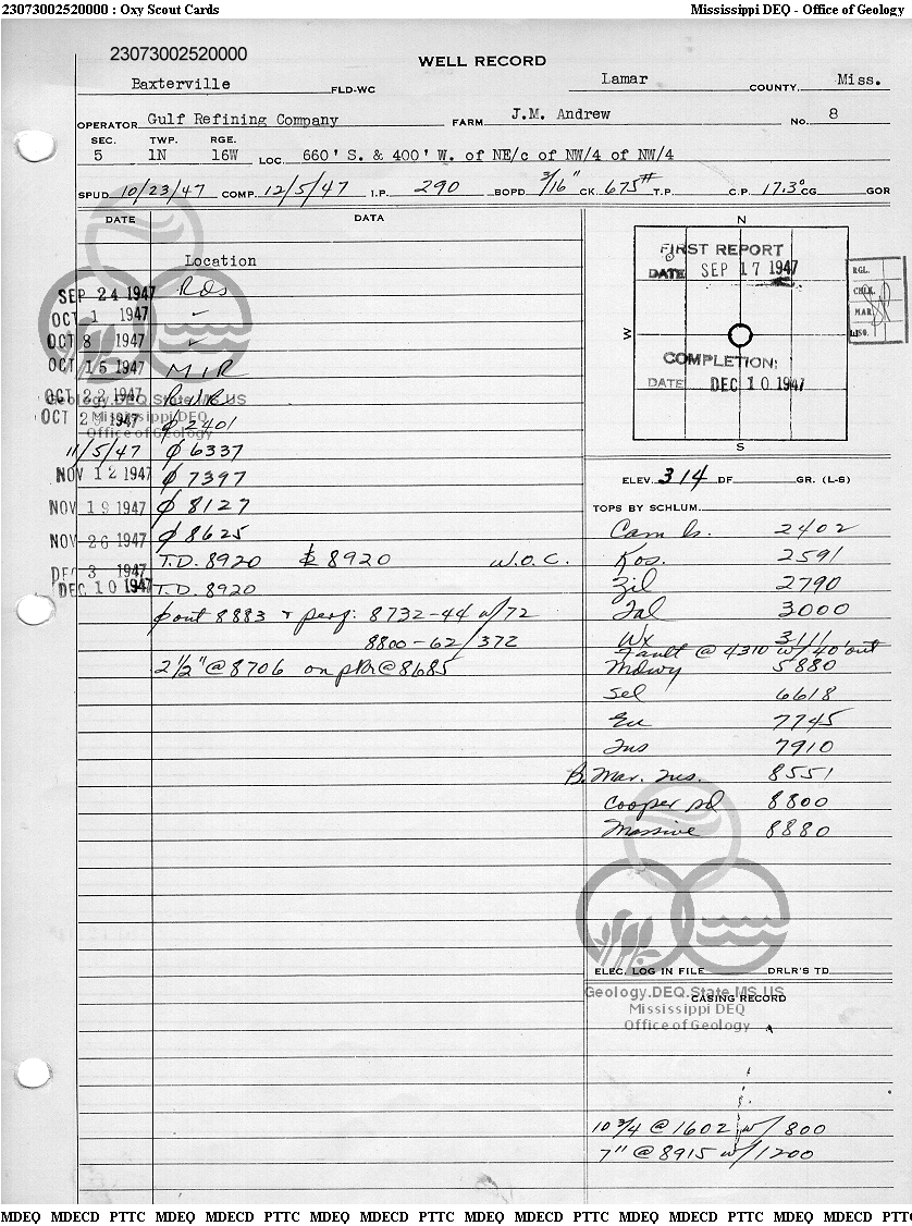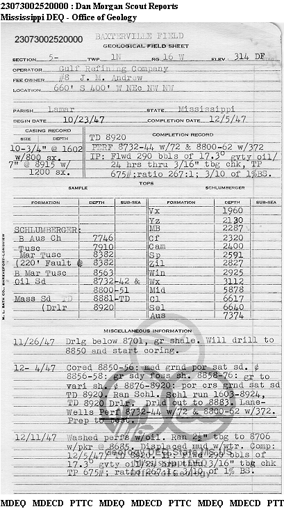 | 1 | 23073002520000 | PENNZOIL EXPL & PROD CO -TX | J M ANDREW | 8 | Oil Production |
