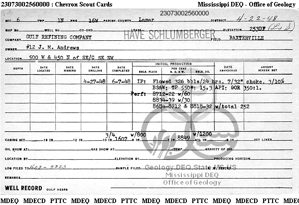 | 1 | 23073002560000 | CHEVRON U. S. A., INC. -TX | J M ANDREW | 12 | Oil Production |