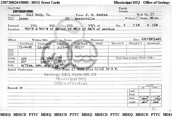 | 1 | 23073002610000 | TELLUS OPERATING GROUP LLC | J M ANDREW | 17 | Oil Production |