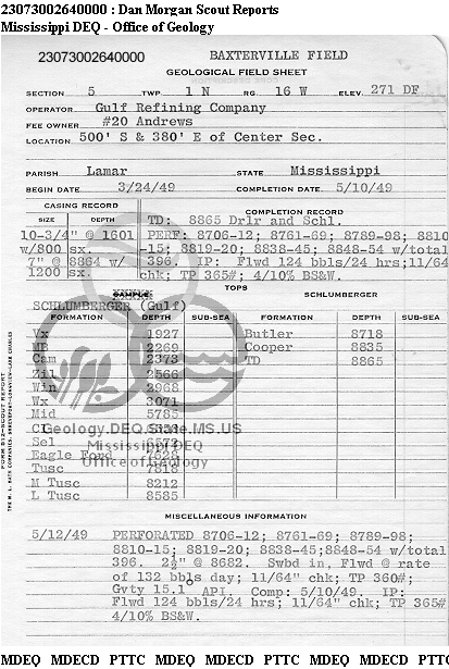 | 1 | 23073002640000 | TELLUS OPERATING GROUP LLC | J M ANDREW | 20 | Production |