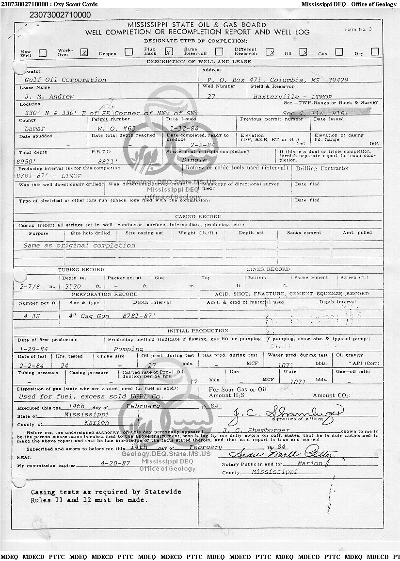 | 1 | 23073002710000 | TELLUS OPERATING GROUP LLC | J M ANDREW | 27 | Production |