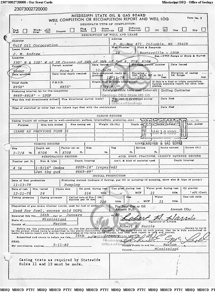 | 1 | 23073002720000 | TELLUS OPERATING GROUP LLC | J M ANDREW | 28 | Oil Production |
