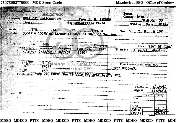 | 1 | 23073002770000 | PENNZOIL EXPL & PROD CO -TX | J M ANDREW | 33 | Oil Production |