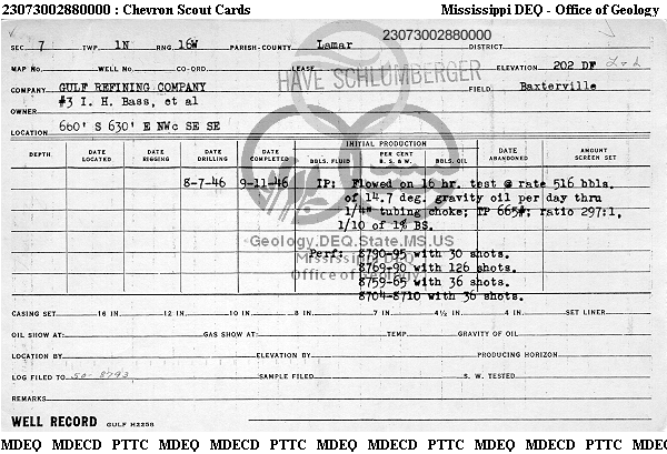 | 1 | 23073002880000 | GULF OIL CORP. | I H BASS ETAL | 3 | Oil Production |