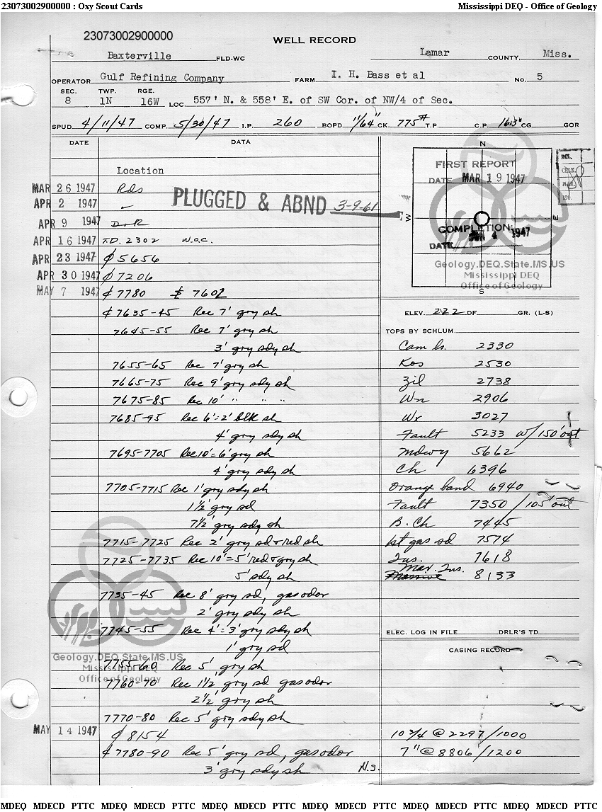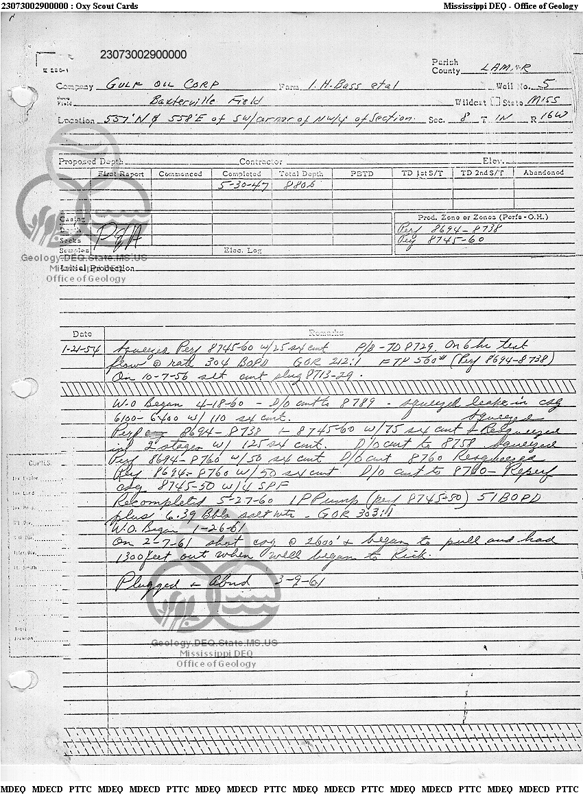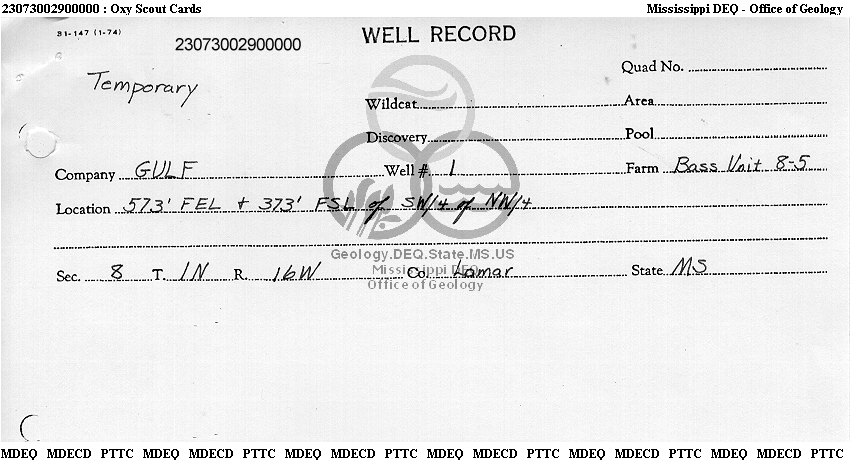 | 1 | 23073002900000 | GULF OIL CORP. | I H BASS ETAL | 5 | Oil Production |