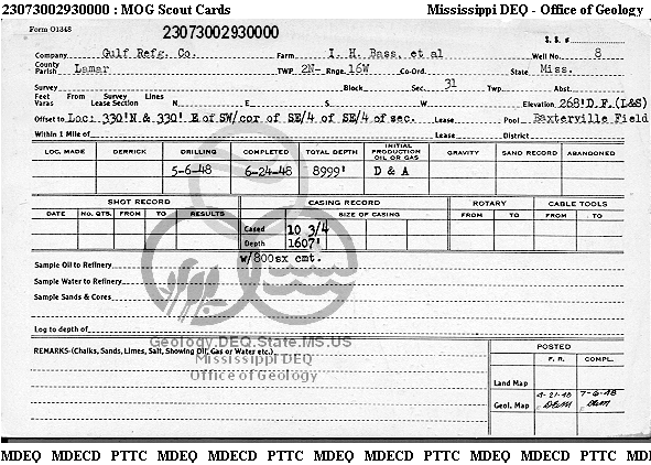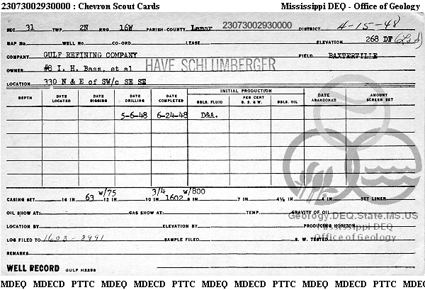| 1 | 23073002930000 | GULF REFINING CO. | I H BASS ETAL | 8 | Dry Hole |