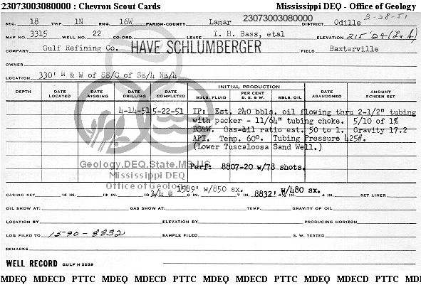 | 1 | 23073003080000 | TELLUS OPERATING GROUP LLC | I H BASS ETAL | 22 | Production |