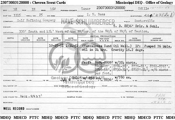 | 1 | 23073003120000 | TELLUS OPERATING GROUP LLC | I H BASS ETAL | 25 | Production |