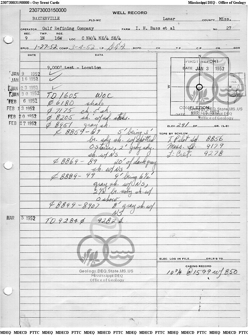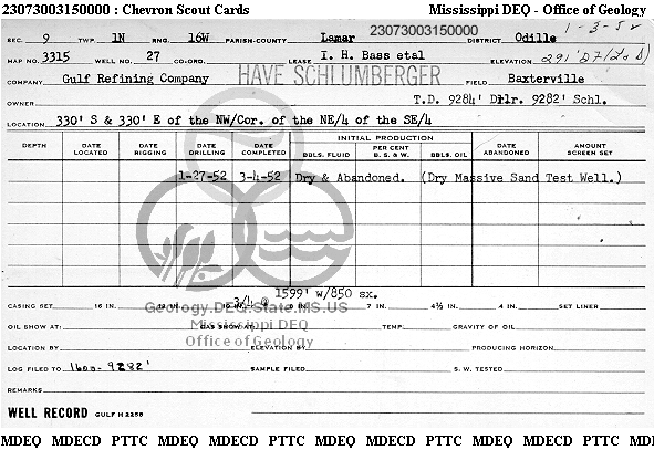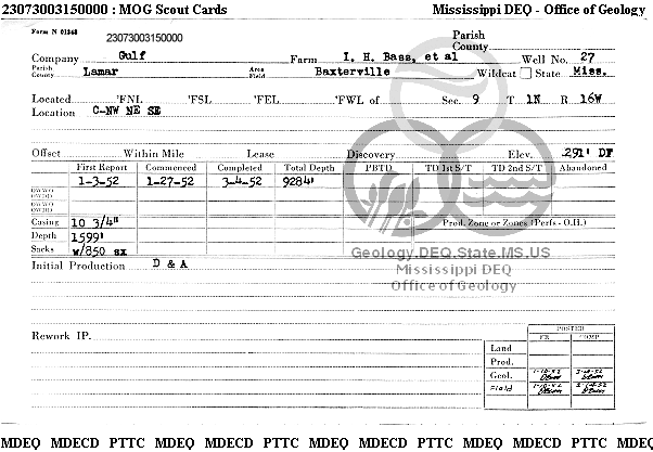 | 1 | 23073003150000 | GULF REFINING CO. | I H BASS ETAL | 27 | Dry Hole |