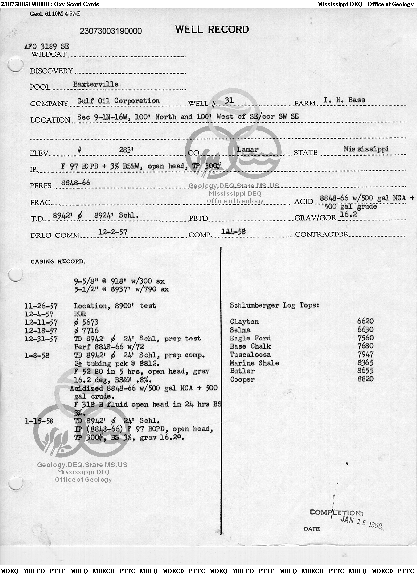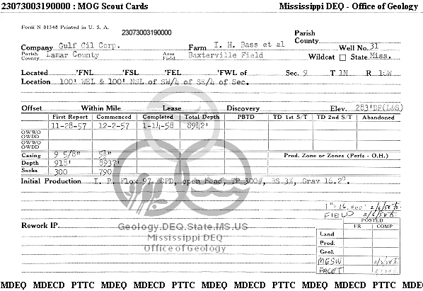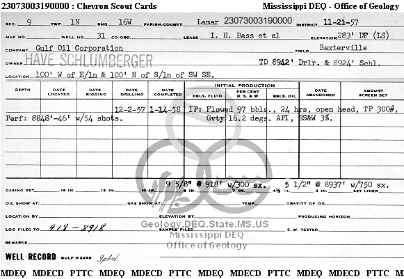| 1 | 23073003190000 | CHEVRON U. S. A., INC. -CA | I H BASS ETAL | 31 | Oil Production |
