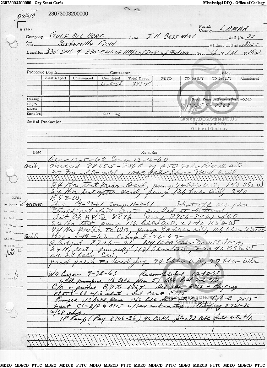 | 1 | 23073003200000 | TELLUS OPERATING GROUP LLC | I H BASS ET AL | 32 | Disposal |