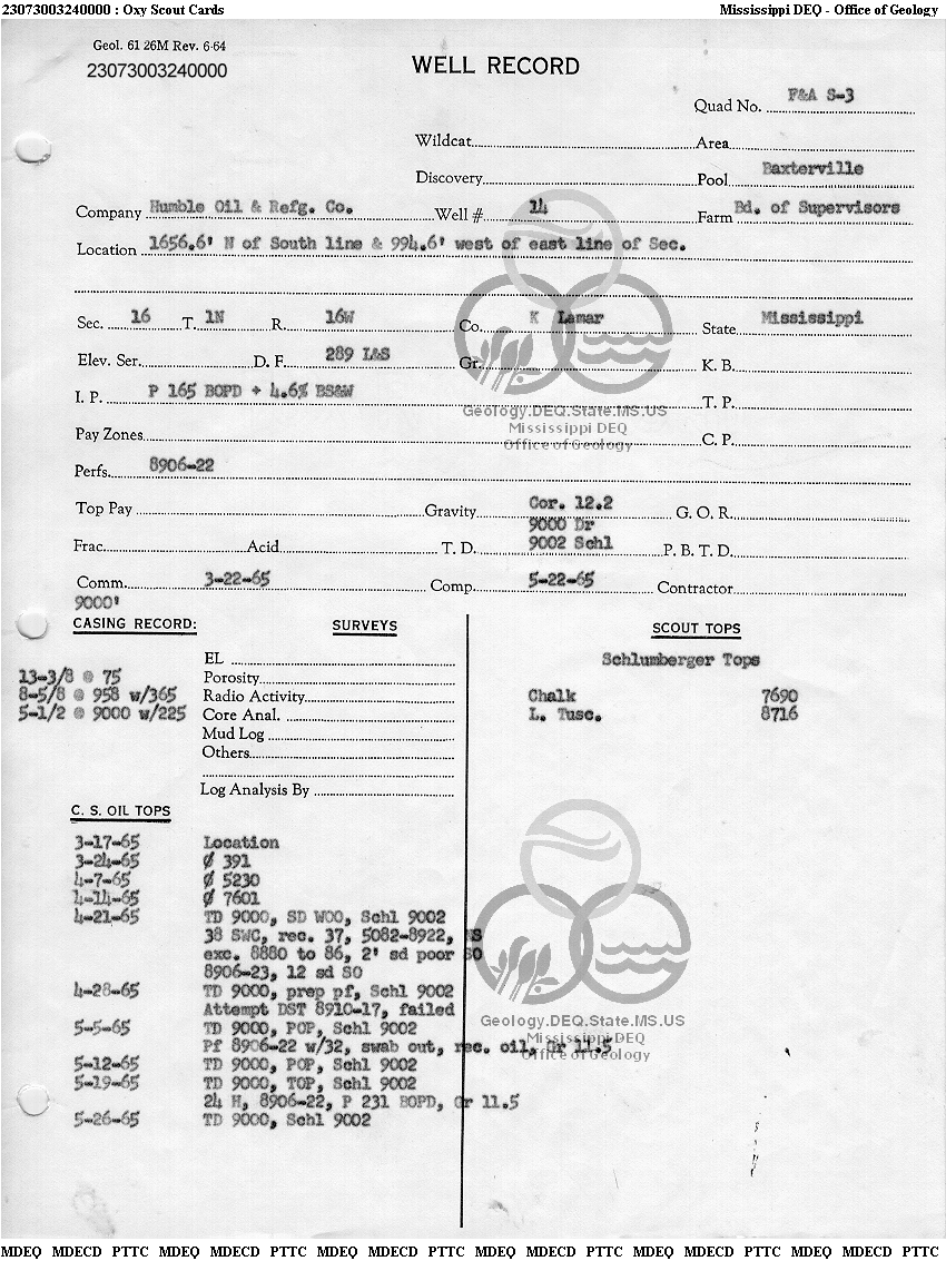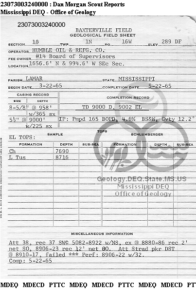 | 1 | 23073003240000 | TEXAS PETROLEUM INVESTMENT CO | BAXTERVILLE 16-9 SWDW | 1 | Disposal |