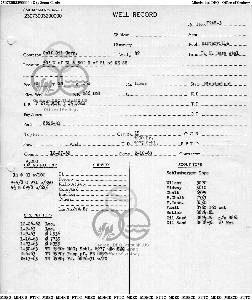| 1 | 23073003290000 | GULF OIL CORP. | BASS I H ET AL | 49 | Oil Production |
