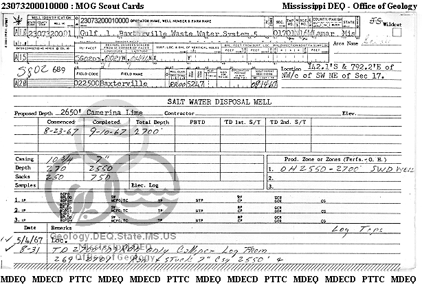 | 1 | 23073200010000 | PENNZOIL EXPL & PROD CO. -MS | WWS 5 WELL | 1 | Disposal |