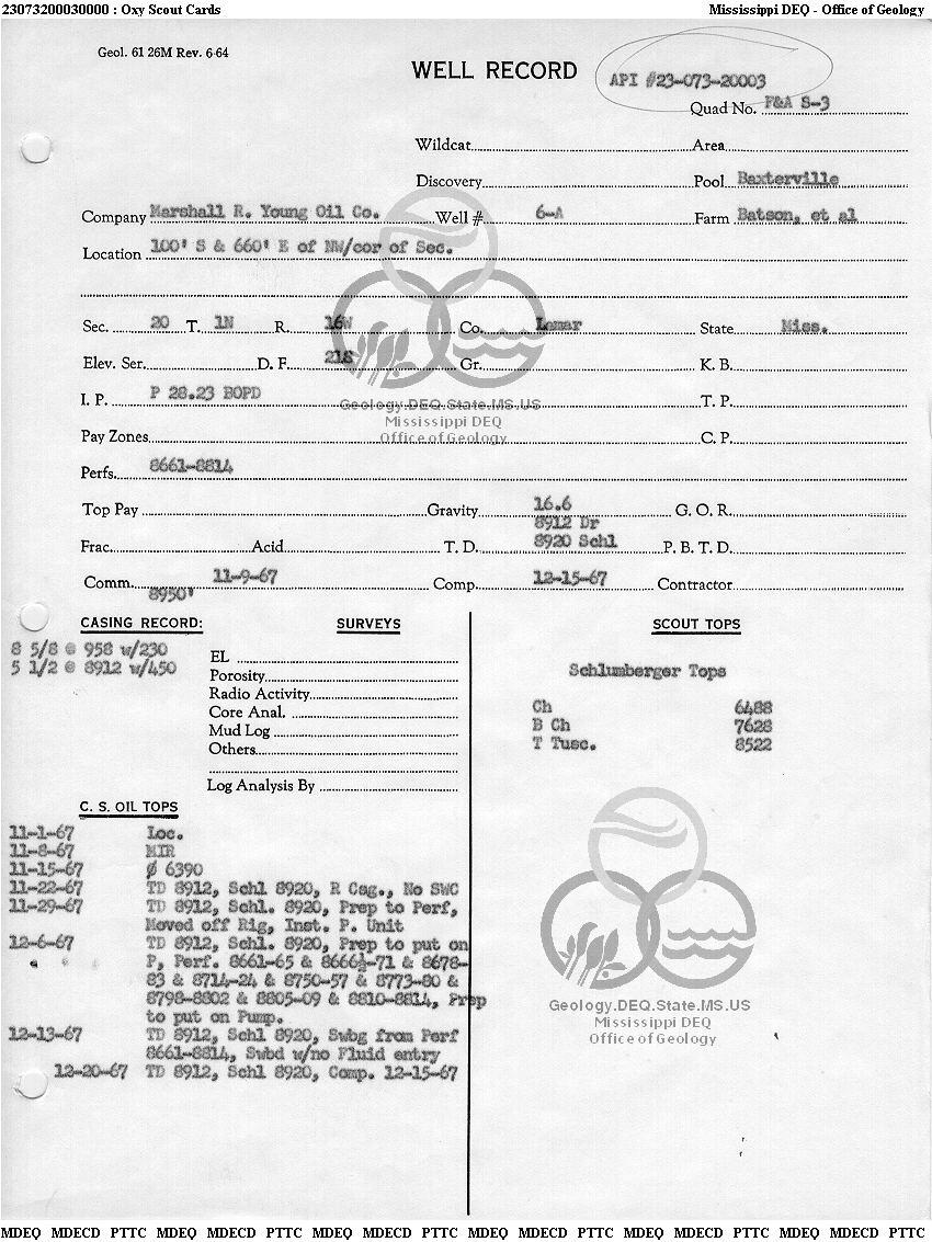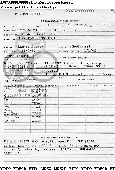 | 1 | 23073200030000 | TEXAS PETROLEUM INVESTMENT CO | BATSON ETAL "M" | 6-A | Oil Production |