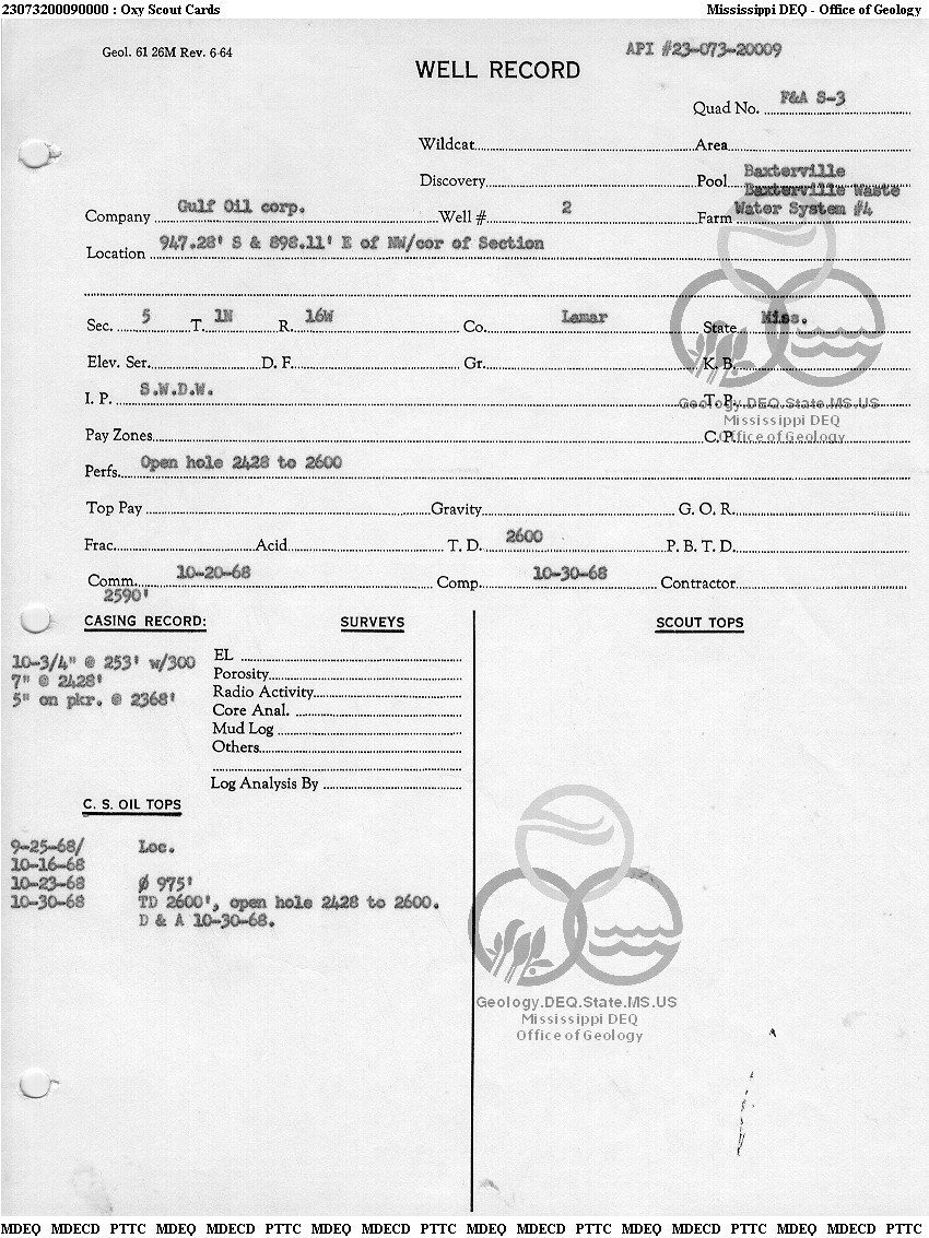 | 1 | 23073200090000 | TELLUS OPERATING GROUP LLC | WWS 4 WELL | 2 | Disposal |