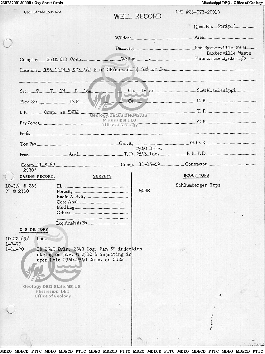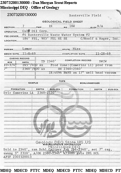 | 1 | 23073200130000 | PENNZOIL EXPL & PROD CO. -MS | WWS 2 WELL | 4 | Disposal |
