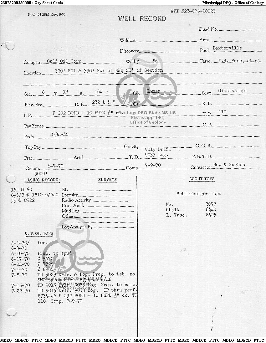 | 1 | 23073200230000 | TELLUS OPERATING GROUP LLC | I H BASS ETAL | 56 | Oil Production |