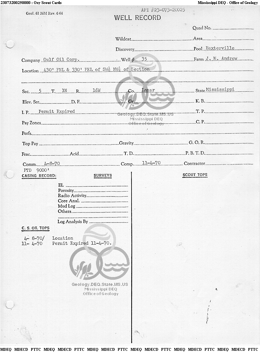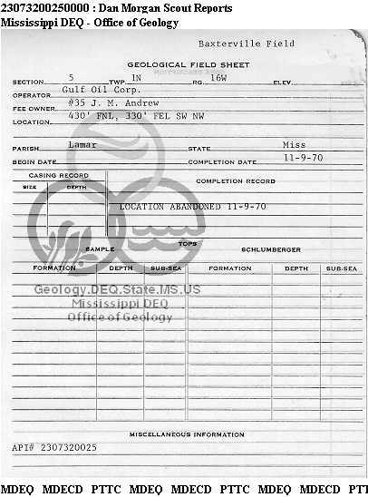 | 1 | 23073200250000 | GULF OIL CORP. | J. M. ANDREW | 35 | Expired Location |