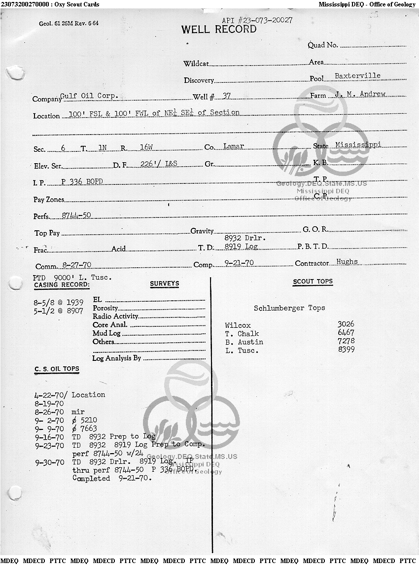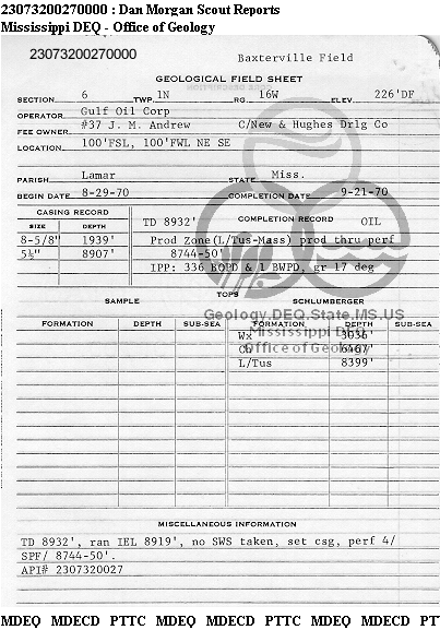 | 1 | 23073200270000 | TELLUS OPERATING GROUP LLC | J M ANDREW | 37 | Oil Production |