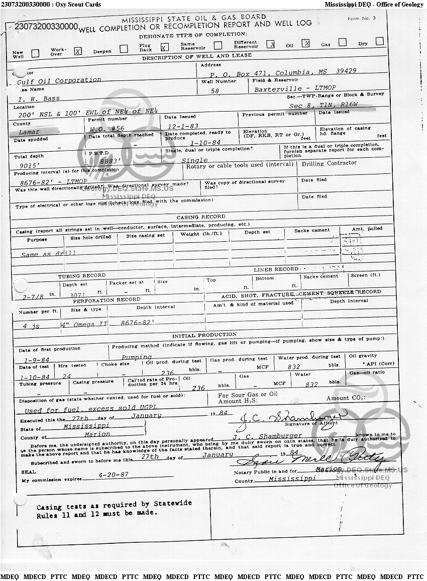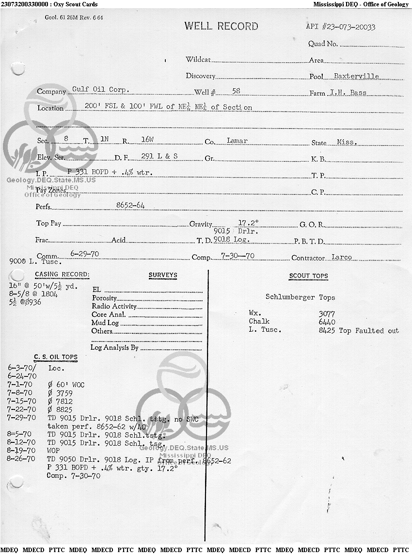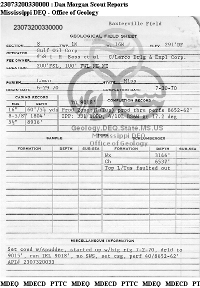 | 1 | 23073200330000 | TELLUS OPERATING GROUP LLC | I H BASS ETAL | 58 | Oil Production |