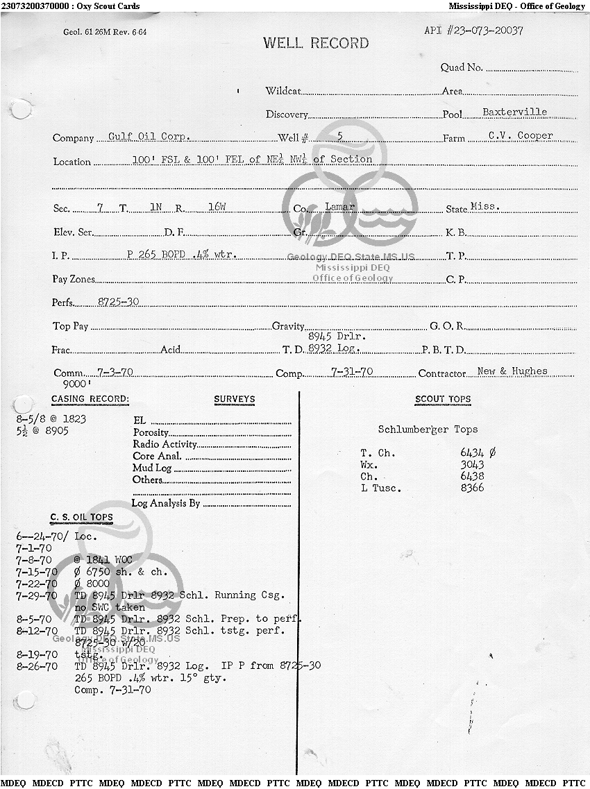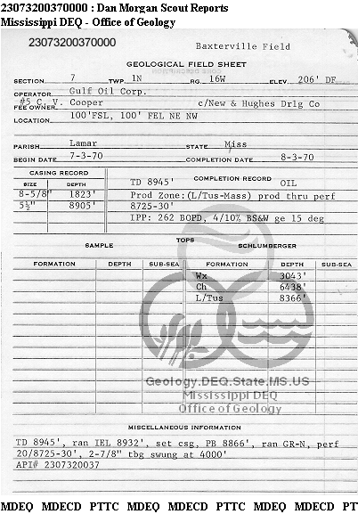 | 1 | 23073200370000 | TELLUS OPERATING GROUP LLC | C V COOPER | 5 | Oil Production |