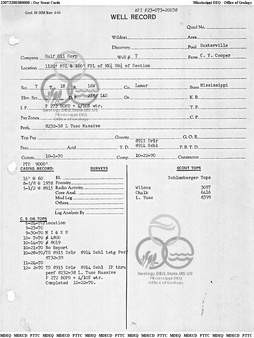 | 1 | 23073200380000 | TELLUS OPERATING GROUP LLC | C V COOPER | 7 | Production |