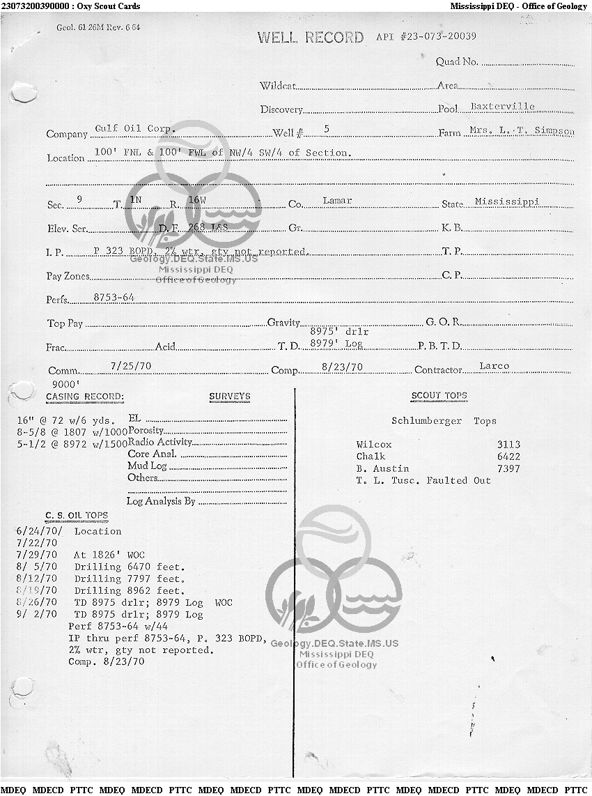 | 1 | 23073200390000 | TELLUS OPERATING GROUP LLC | MRS L T SIMPSON | 5 | Oil Production |