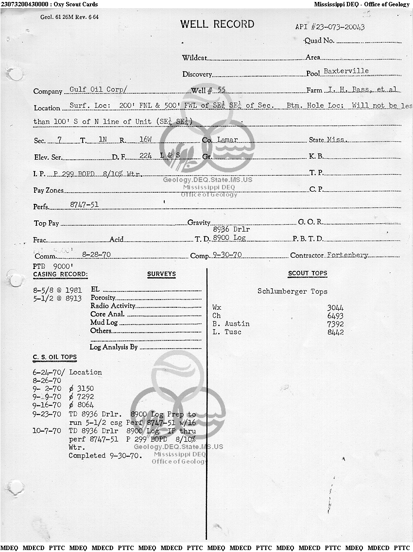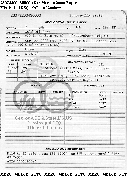 | 1 | 23073200430000 | TELLUS OPERATING GROUP LLC | I H BASS ETAL | 55 | Oil Production |