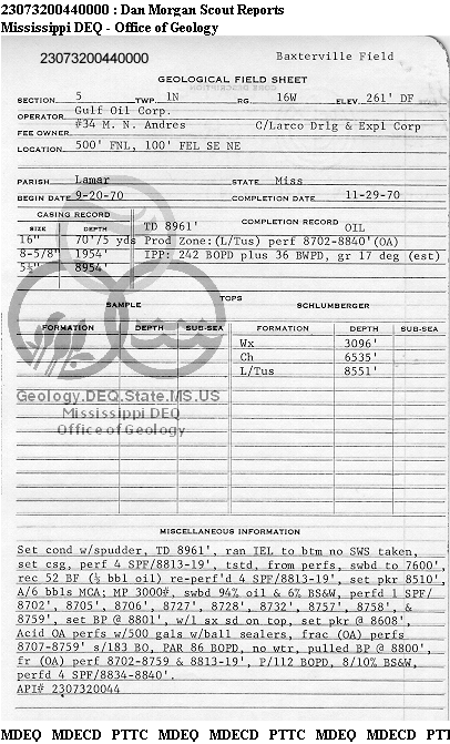| 1 | 23073200440000 | TELLUS OPERATING GROUP LLC | J M ANDREW | 34 | Oil Production |
