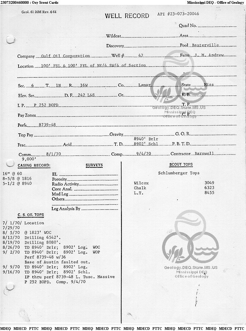 | 1 | 23073200460000 | TELLUS OPERATING GROUP LLC | J M ANDREW | 47 | Oil Production |