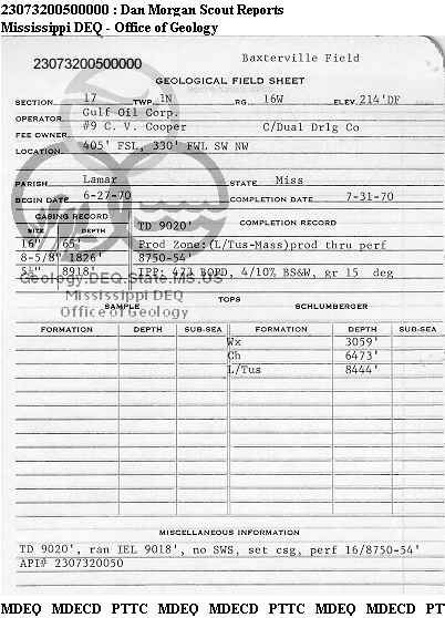 | 1 | 23073200500000 | TELLUS OPERATING GROUP LLC | C V COOPER | 9 | Oil Production |