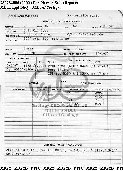 | 1 | 23073200540000 | TELLUS OPERATING GROUP LLC | C V COOPER | 8 | Oil Production |