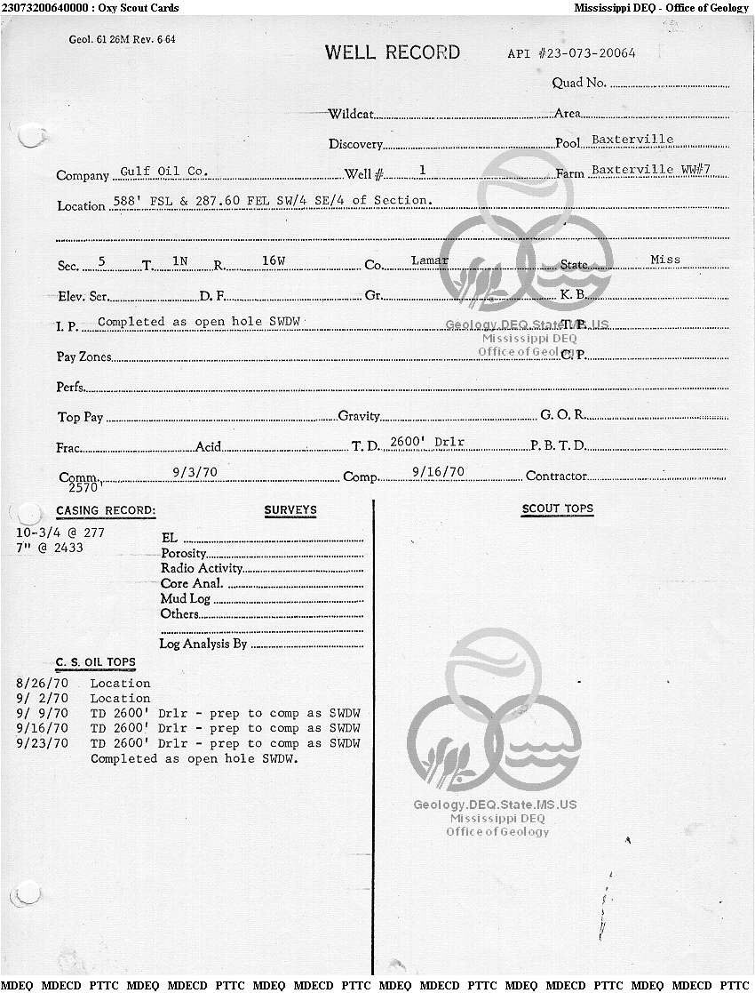 | 1 | 23073200640000 | TELLUS OPERATING GROUP LLC | WWS 7 WELL | 1 | Disposal |