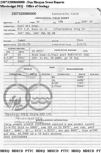 | 1 | 23073200860000 | TELLUS OPERATING GROUP LLC | I H BASS ETAL | 57 | Oil Production |