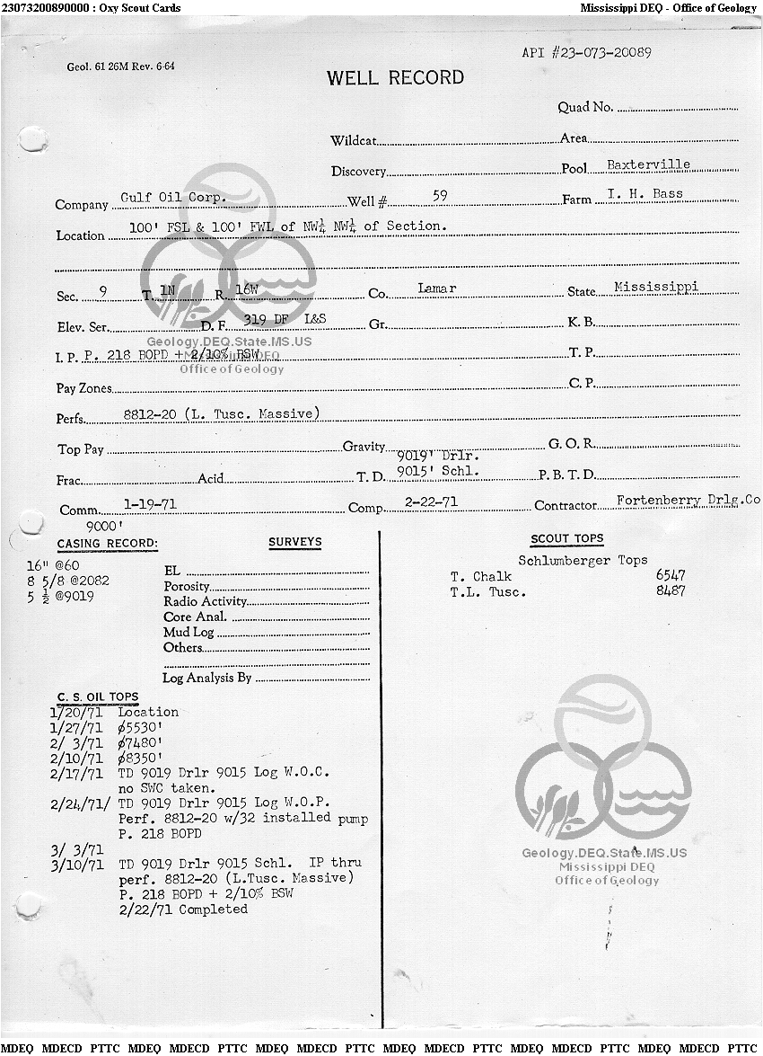 | 1 | 23073200890000 | TELLUS OPERATING GROUP LLC | I H BASS ETAL | 59 | Oil Production |