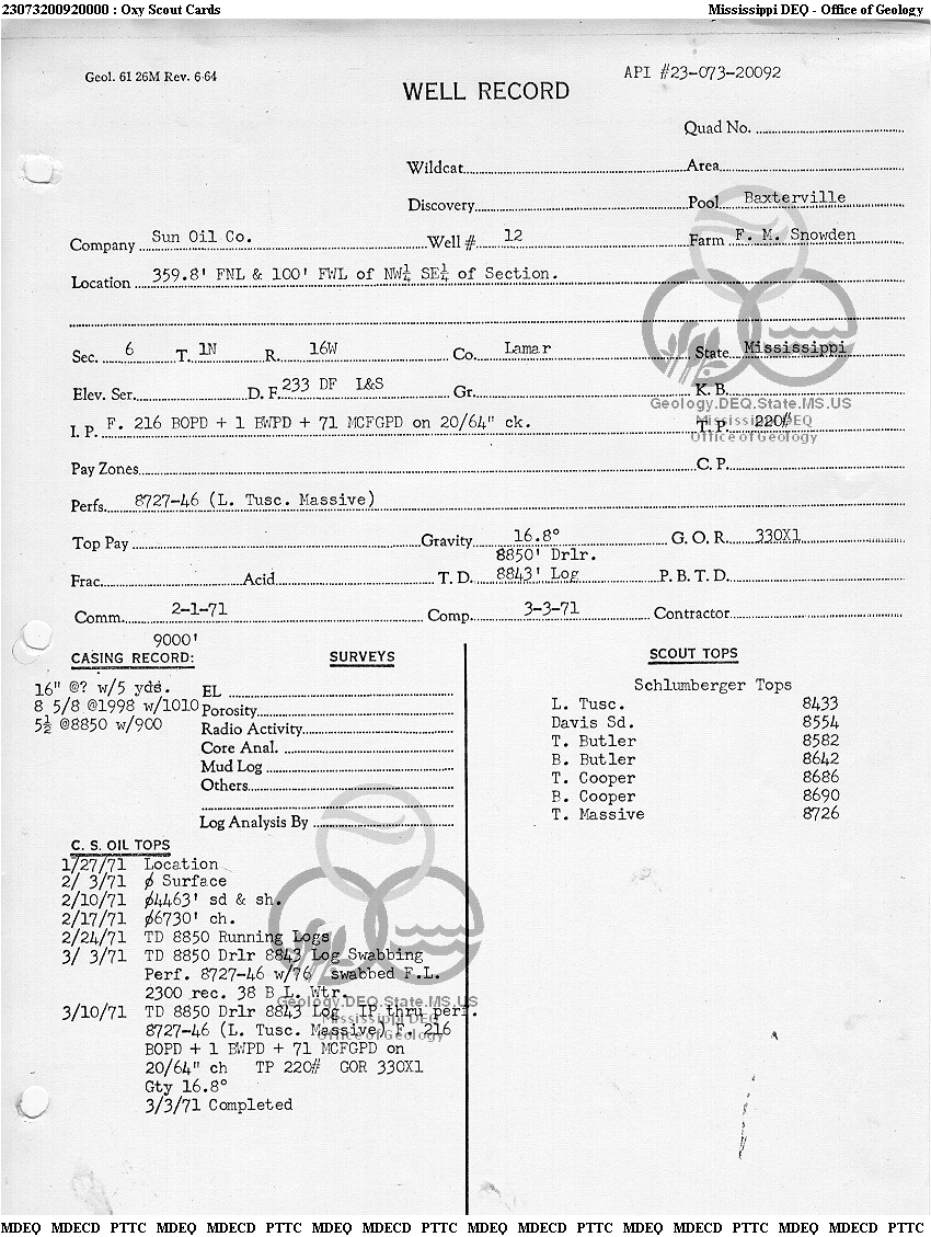 | 1 | 23073200920000 | TELLUS OPERATING GROUP LLC | F M SNOWDEN | 12 | Oil Production |
