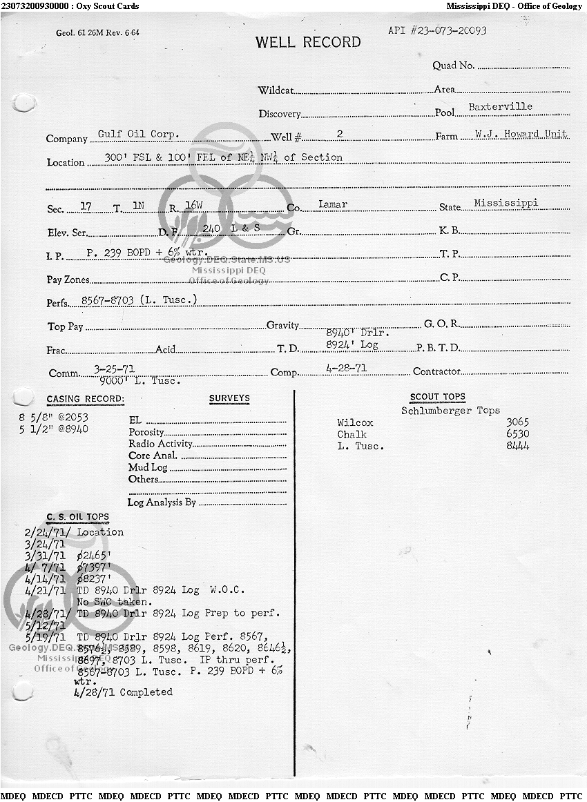 | 1 | 23073200930000 | TELLUS OPERATING GROUP LLC | W J HOWARD UNIT | 2 | Oil Production |