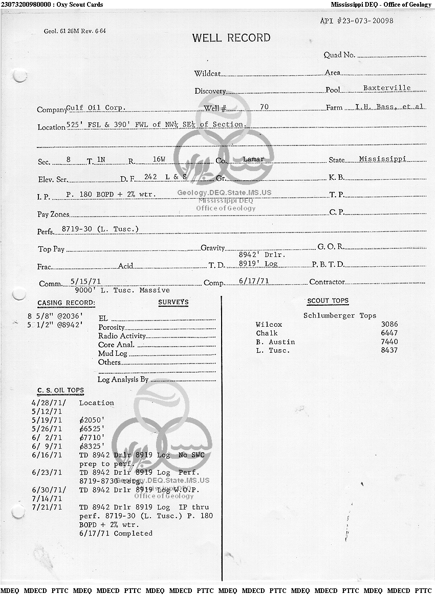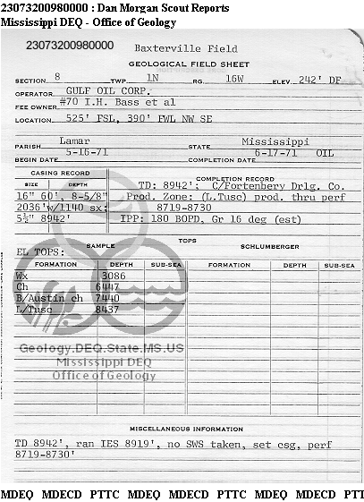 | 1 | 23073200980100 | TELLUS OPERATING GROUP LLC | I H BASS ET AL | 70 | Oil Production |