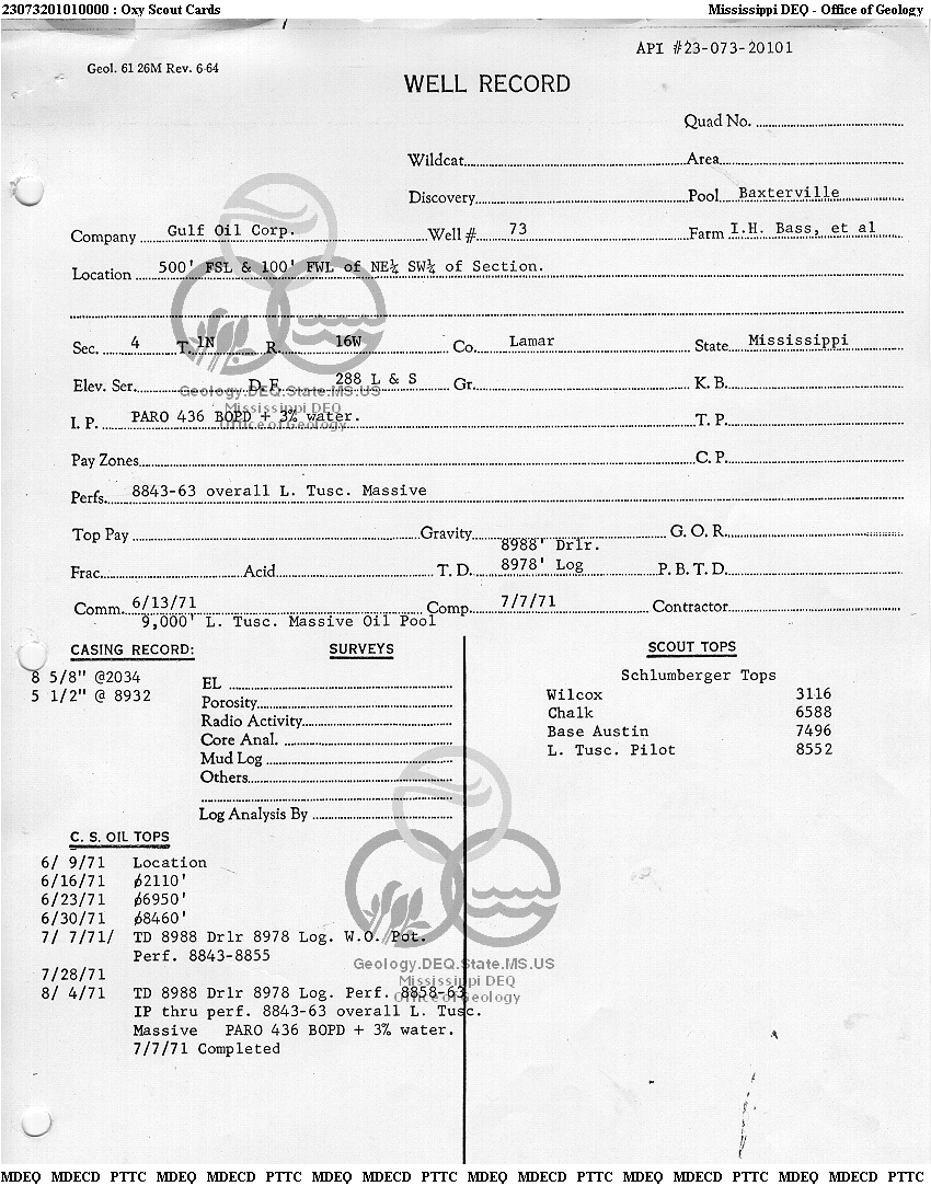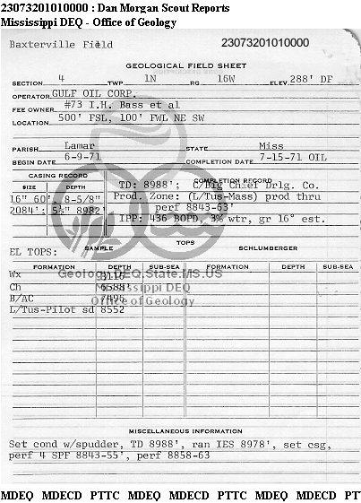 | 1 | 23073201010000 | TELLUS OPERATING GROUP LLC | I H BASS ETAL | 73 | Oil Production |