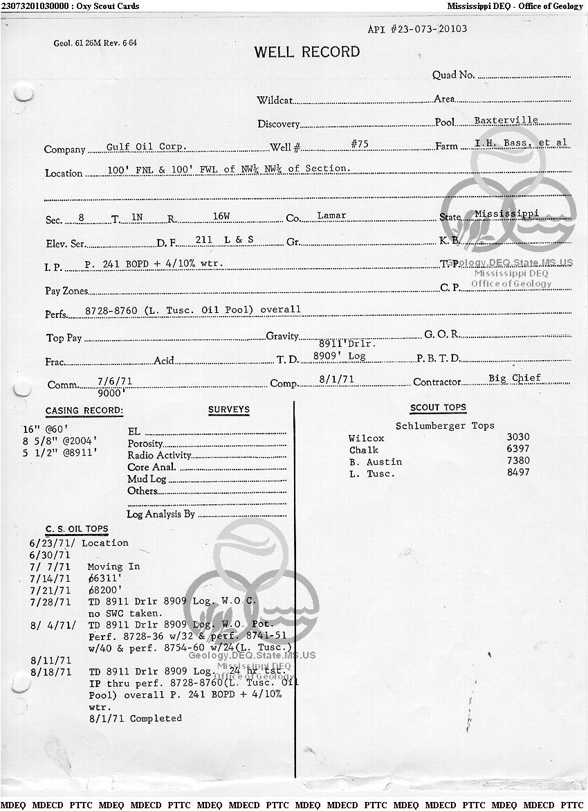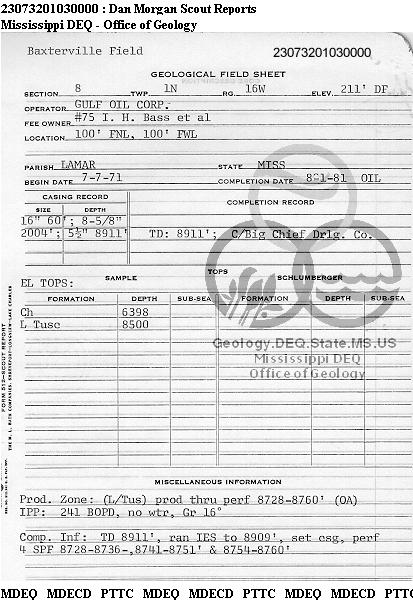| 1 | 23073201030000 | TELLUS OPERATING GROUP LLC | I H BASS ETAL | 75 | Oil Production |