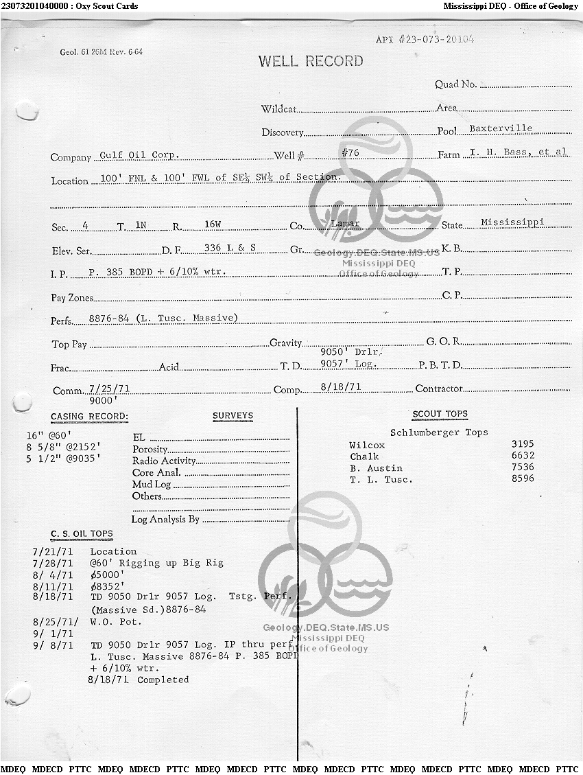 | 1 | 23073201040000 | TELLUS OPERATING GROUP LLC | I H BASS ETAL | 76 | Production |