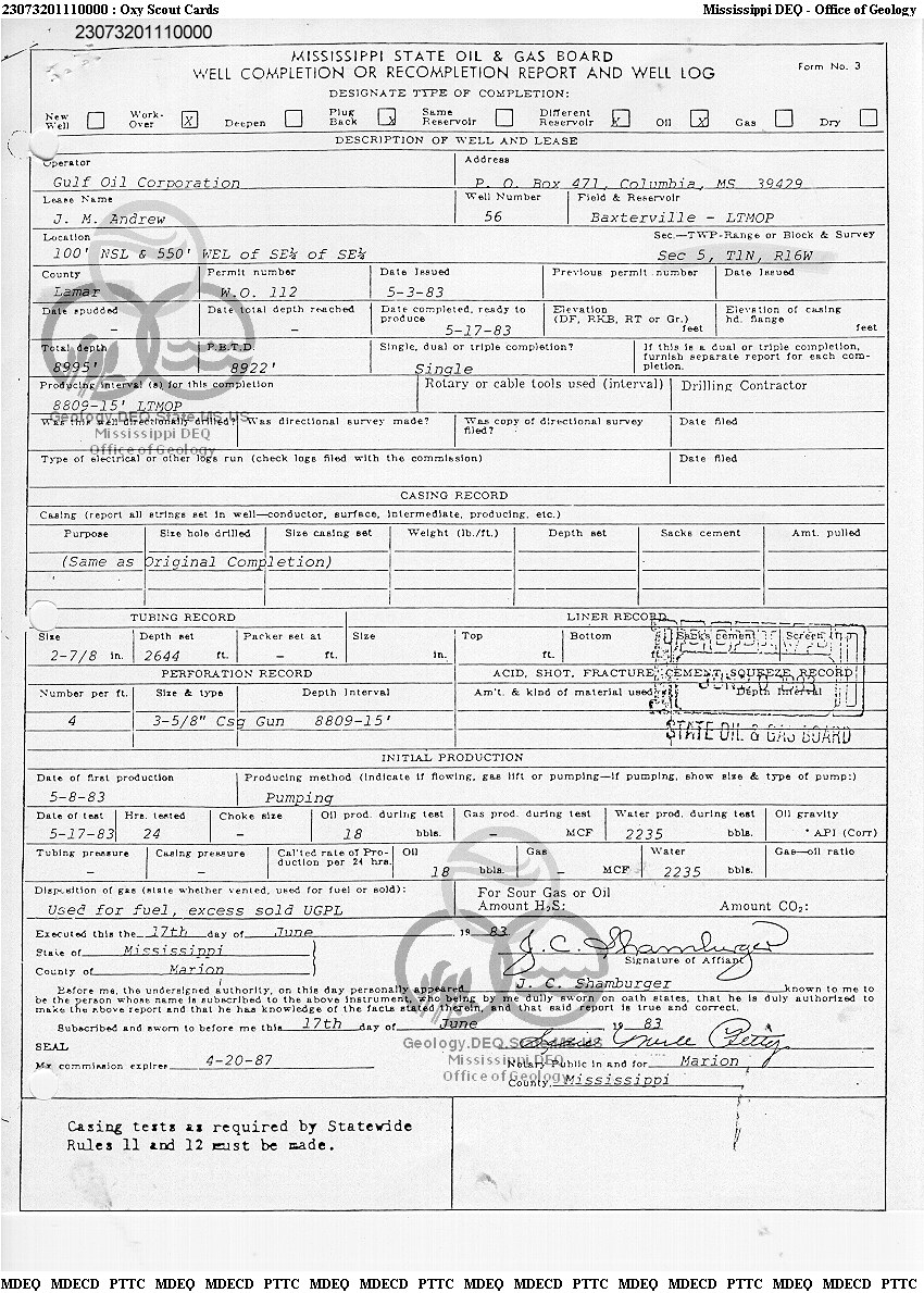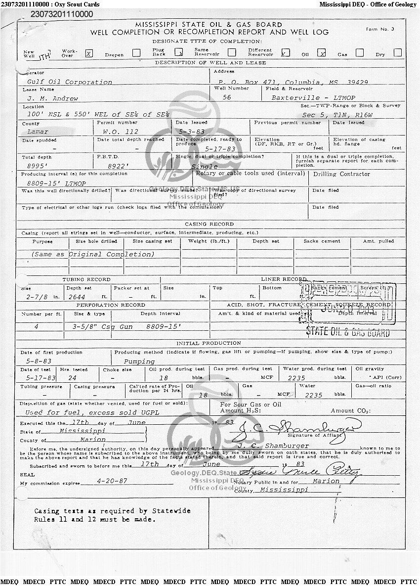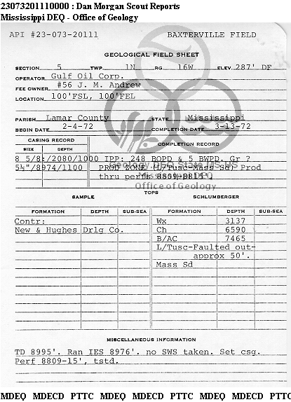 | 1 | 23073201110000 | TELLUS OPERATING GROUP LLC | J M ANDREW | 56 | Oil Production |