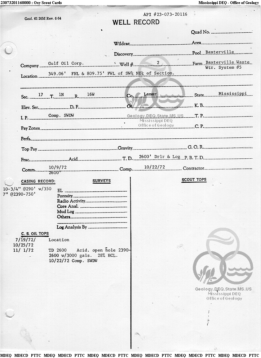 | 1 | 23073201160000 | TELLUS OPERATING GROUP LLC | WWS 5 WELL | 2 | Disposal |